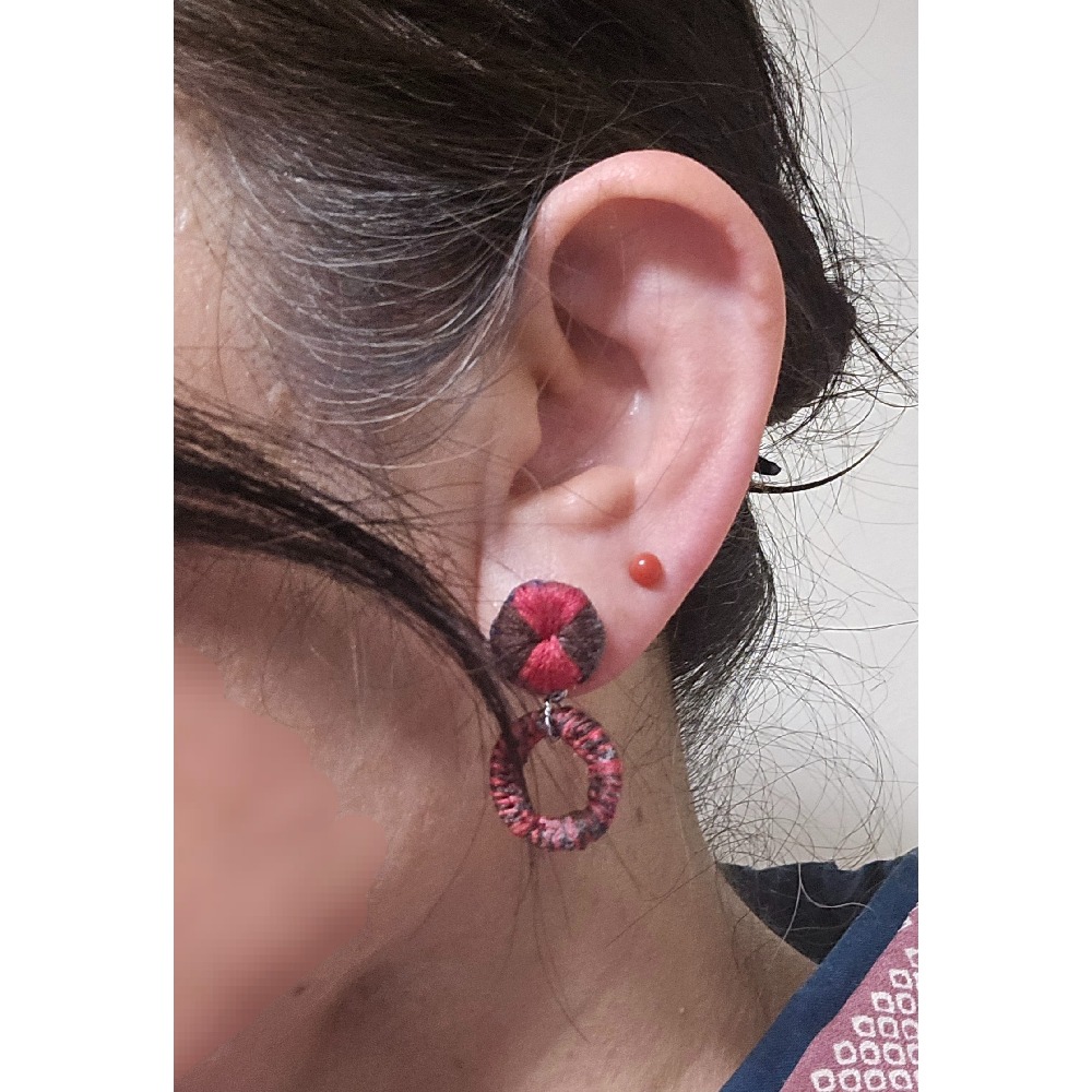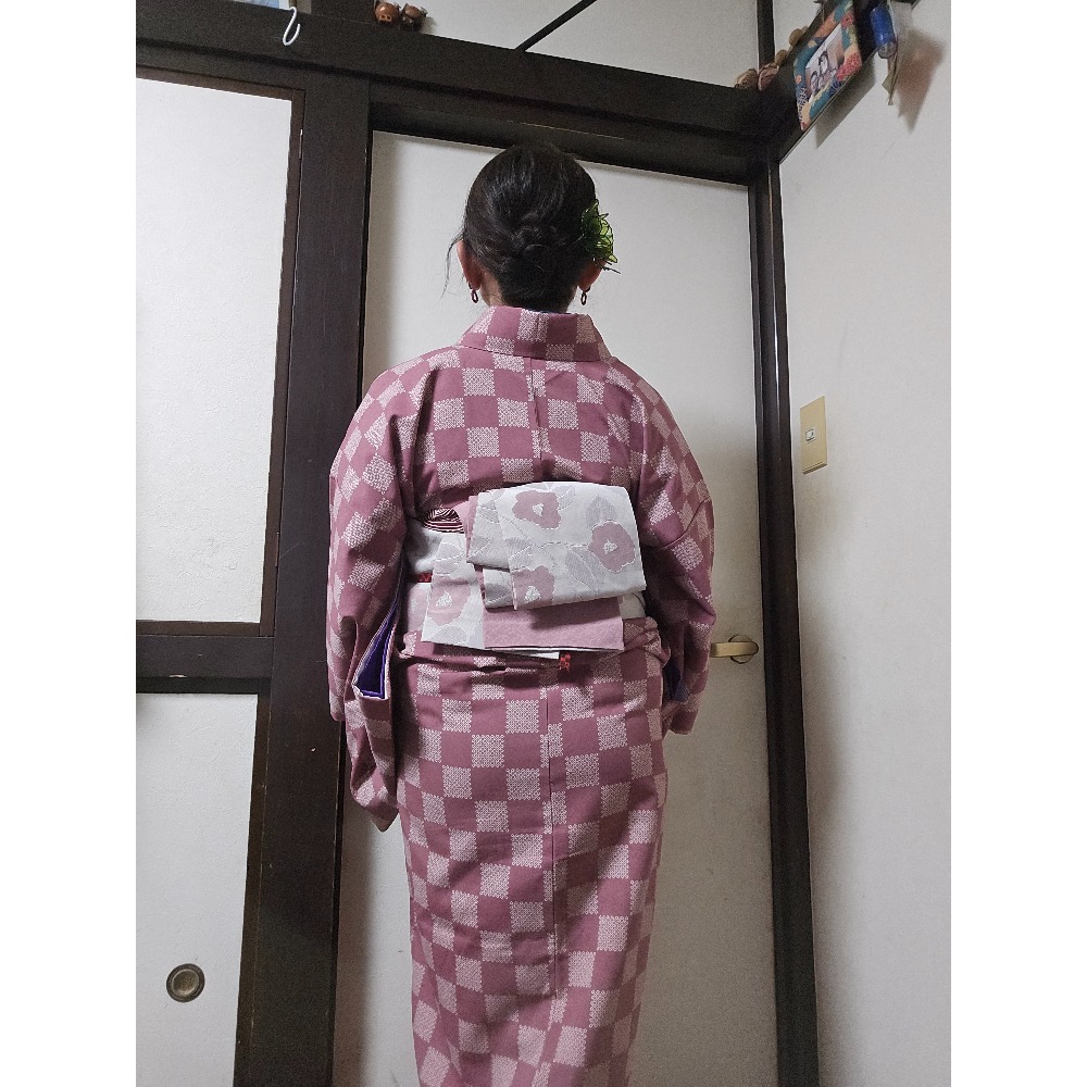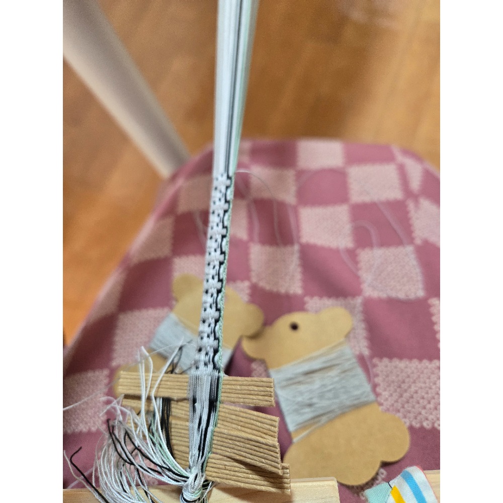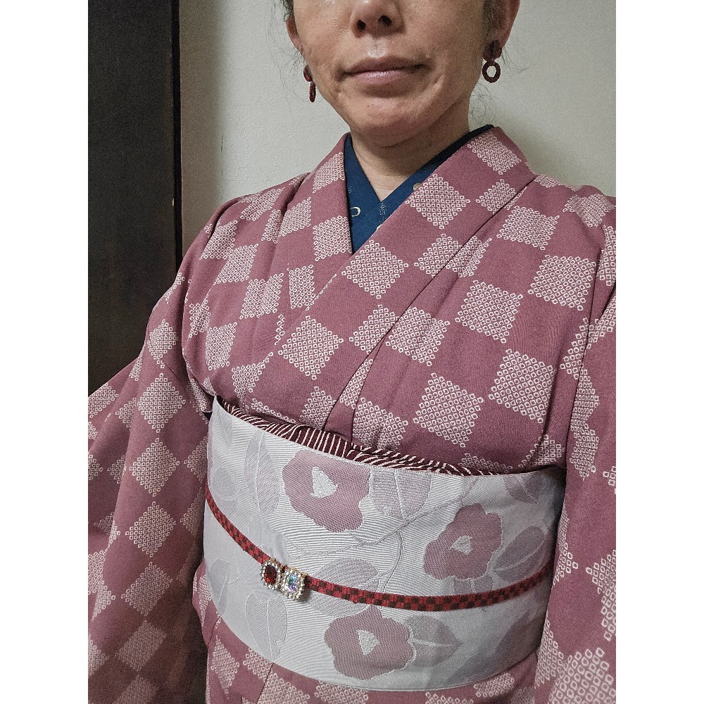 けいさんのカード織りワークショップ2回目に参加した日は、初回の市松三分紐を中心にコーデを組みました。着物も市松にしてみたよ☺️ 全体を、赤ピンク紫あたりでまとめて。ピアスは三分紐の残り糸で作ったもの。 この日はパンダの三分紐に取り組みましたよ!🐼🐼🐼 #まさよの着物2026 16 #まさよの着物