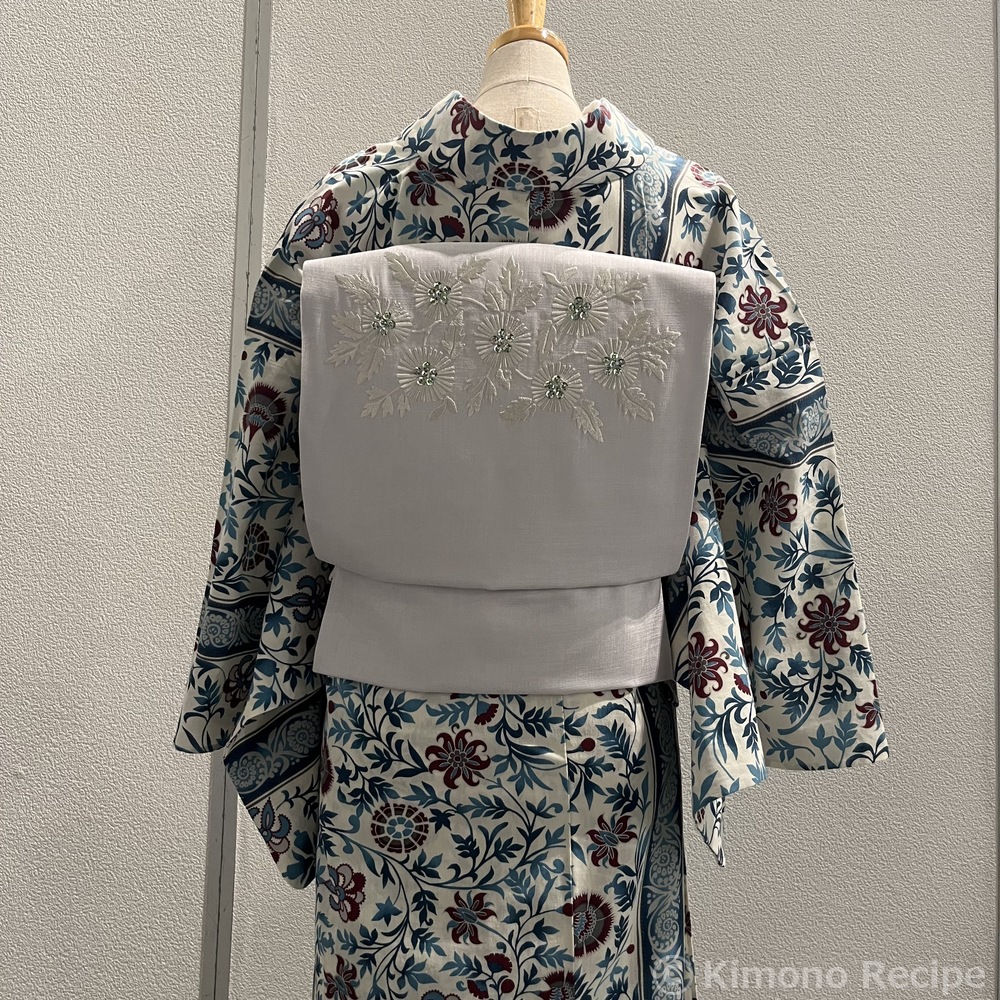 出展者:59kimono 5月から9月まで着まわせる着物「59kimono」の今年1番人気のデザイン「南の更紗」と グレー地に刺繍とビーズをあしらった名古屋帯「ナチュラルブーケ」を合わせました。 南の風が吹き抜けるような爽やかなイメージの大人可愛いコーディネートです。 着物 南の更紗 66,000円税込 名古屋帯 ナチュラルブーケ 49,500円税込 着付師:野口 麻理 Mari Noguchi