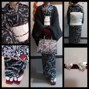 KIMONOMODERN sha*lan*ra TSUBAKIAN 結城紬 岡重 カレンブロッソ がま口バッグ