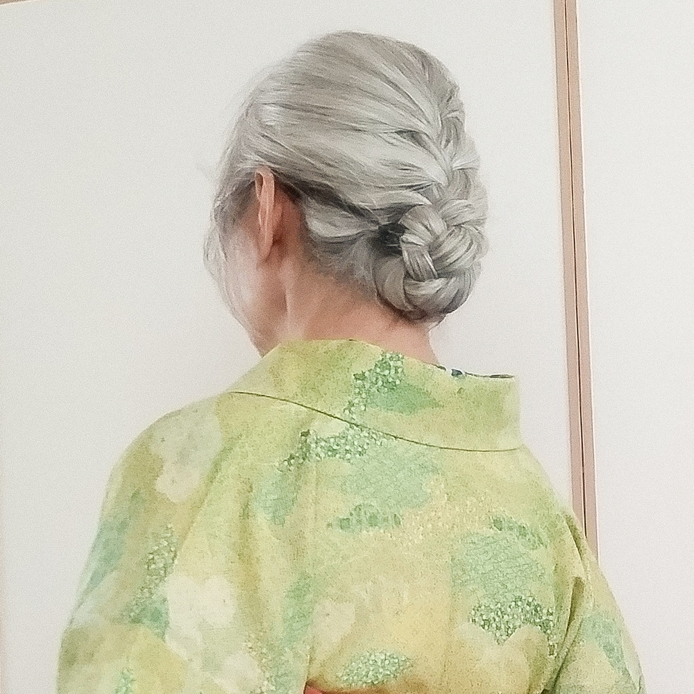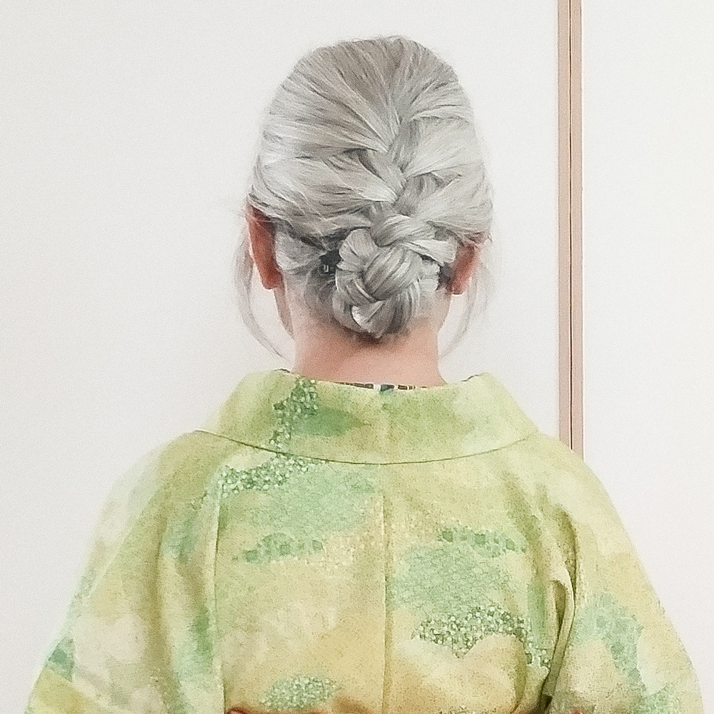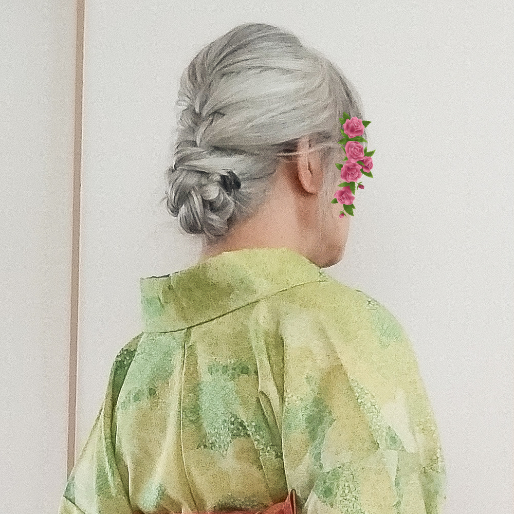 吉弥は上手く縦長に出来なかったけどベコベコにならずに済んだのでまぁOK。髪は編み込みで毛先まで三編みにして内巻きでくるくる巻き上げてミニクリップで固定。