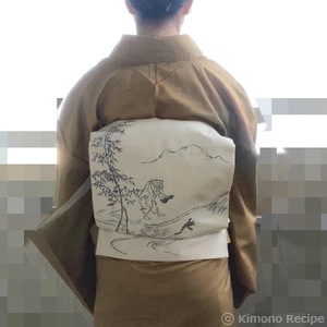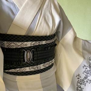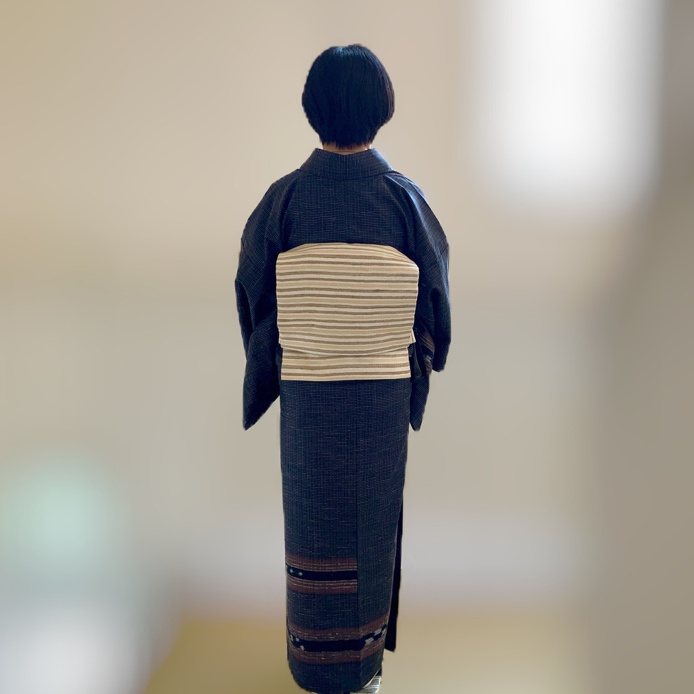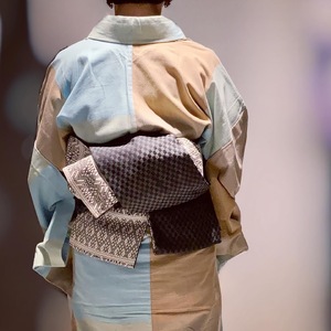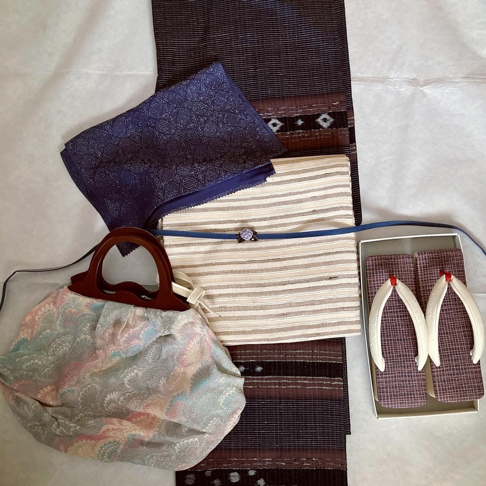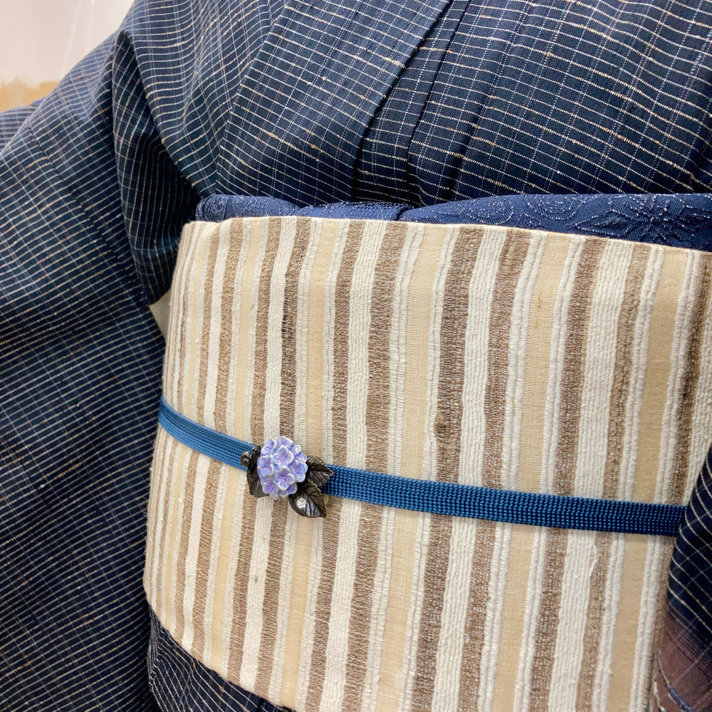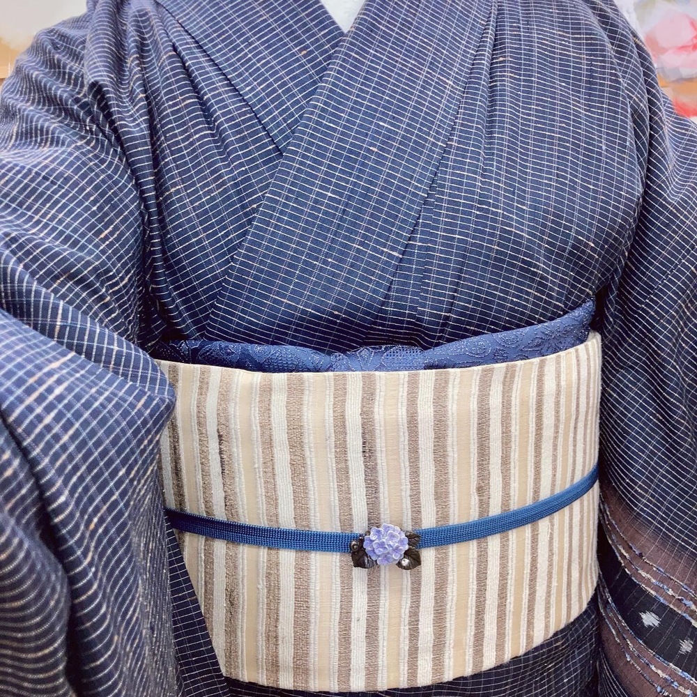着付けレッスンコーデ 曇天もよう…暗い色合いが良い 【ぜんまい紬 訪問着】【野蚕糸の袋帯】 @kimonoichiba 【マトリョーシカ 帯揚げ】 【カフェ草履】 @coten_official 【五嶋紐 三分紐】 【紫陽花 SUU帯留】 @ichirimall きんち腰紐・きもののここち透佳・広巾伊達締め・ゑり正 ・タオル補正・くノ一麻子・満点ガードル裾よけ・たかはしきもの工房・ゑびす足袋