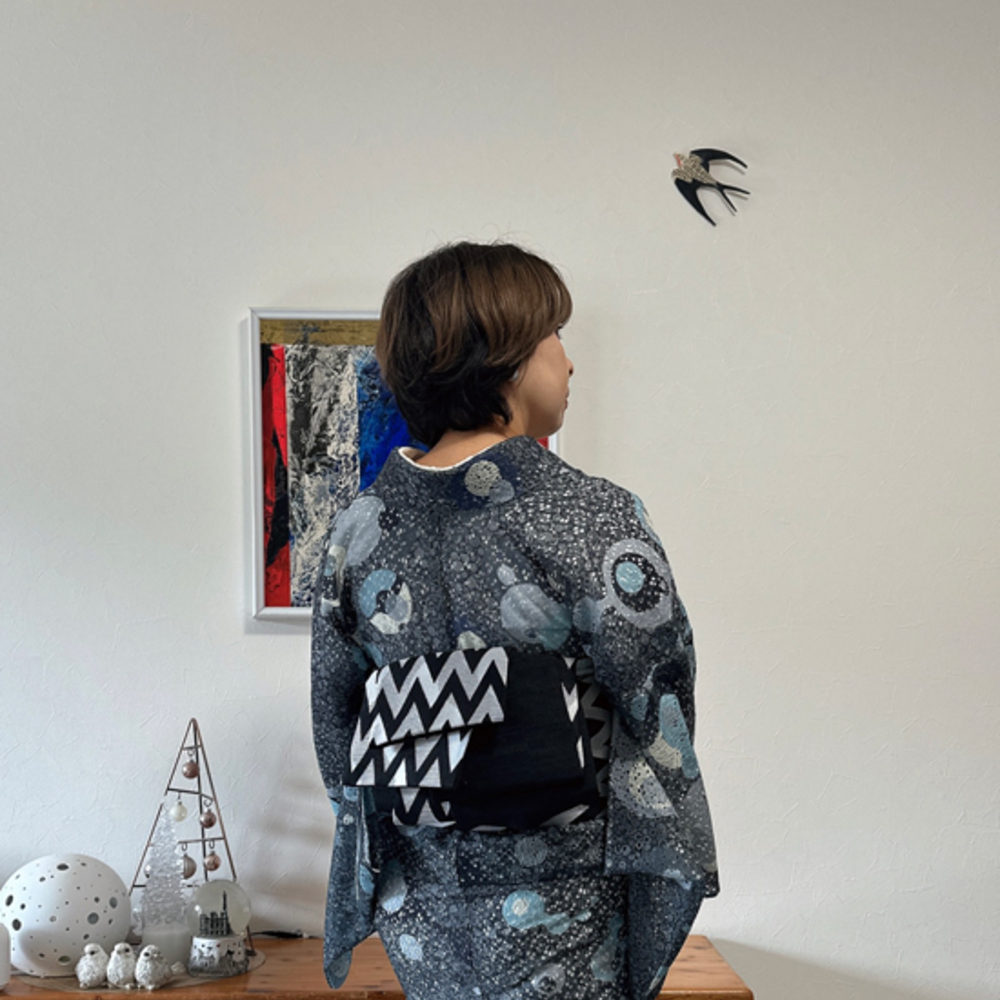 単衣 ろっこや ラバランプレース KIMONO MODERN 撫松庵 半幅帯