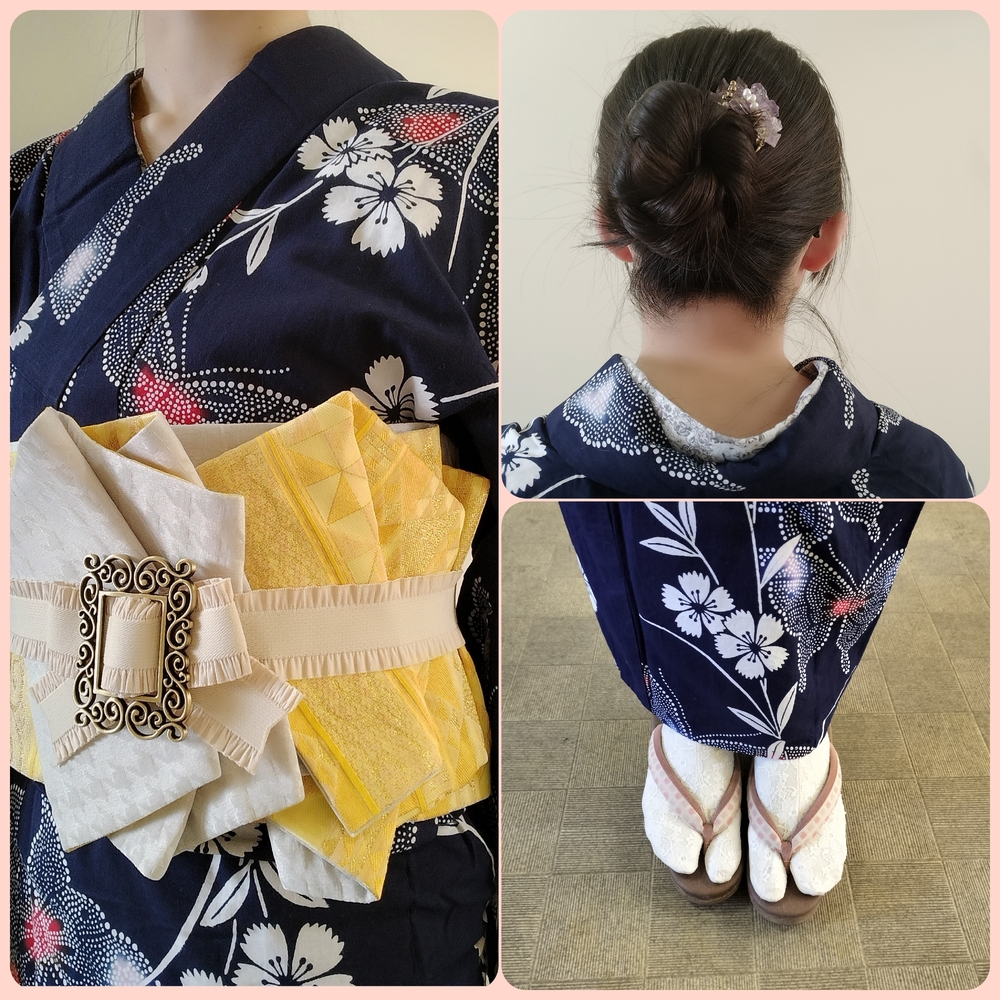 阪神百貨店のポップアップ行こうと思って、五月堂さんの帯とsha*lan*raさんのリボンゴムベルトにしたんですよ。