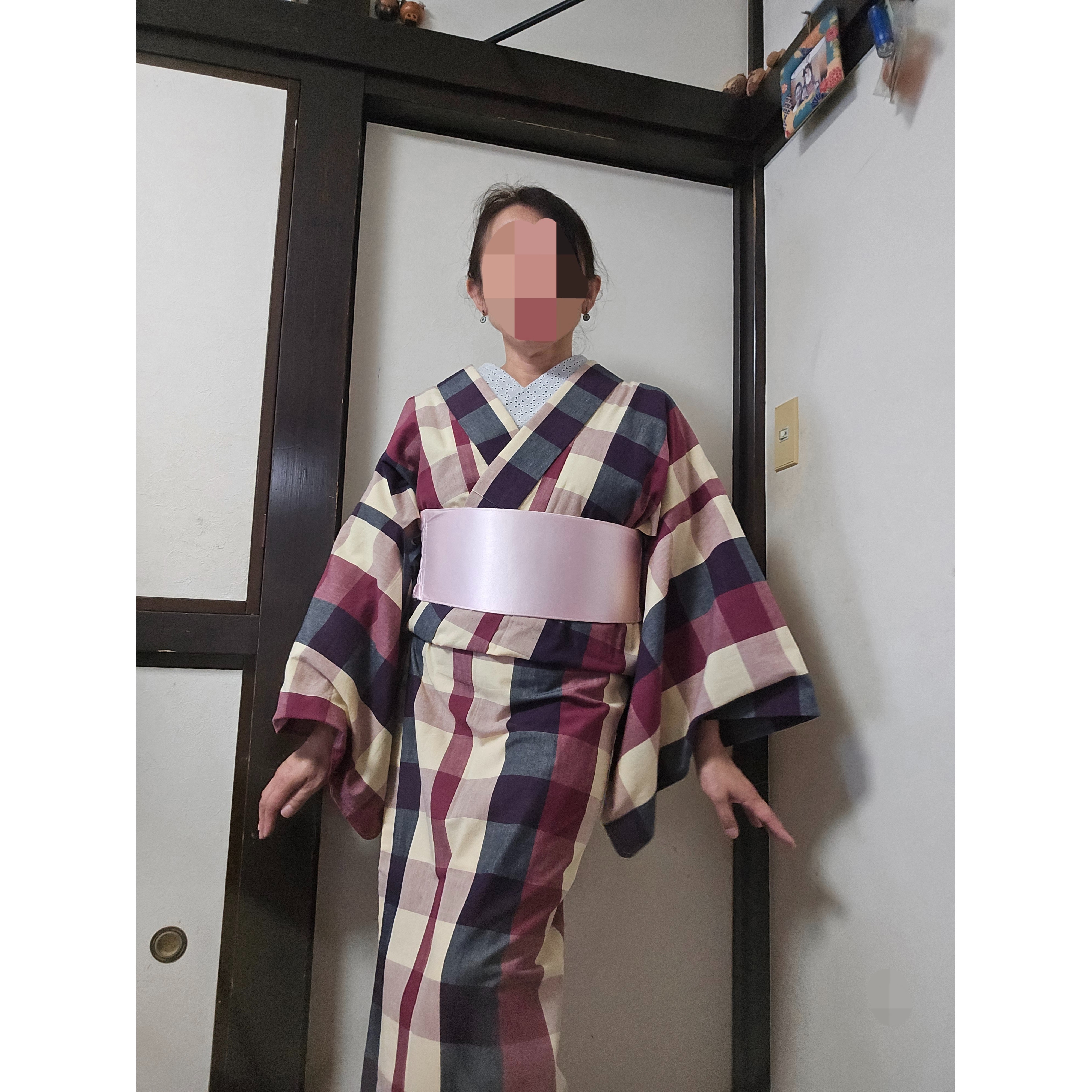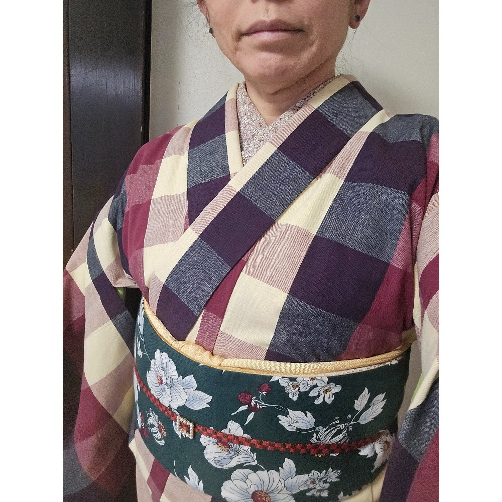 三重県からいらした呉服屋「すかや」さんの185周年祭にお邪魔してきました。以前お仕立てをお願いした、私にとって初の伊勢木綿に、同色のポイントが入った綿の帯を合わせて☺️ 蓮華さん(お仕事)や、ねむちゃん(お客さん)に会えたし、伊勢型紙WS楽しかった🥰 #まさよの着物2026 17 #まさよの着物