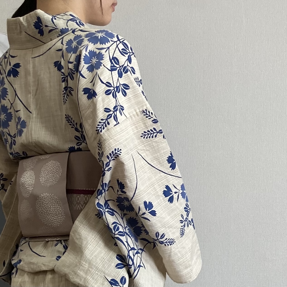 生成り地 秋草文様の浴衣