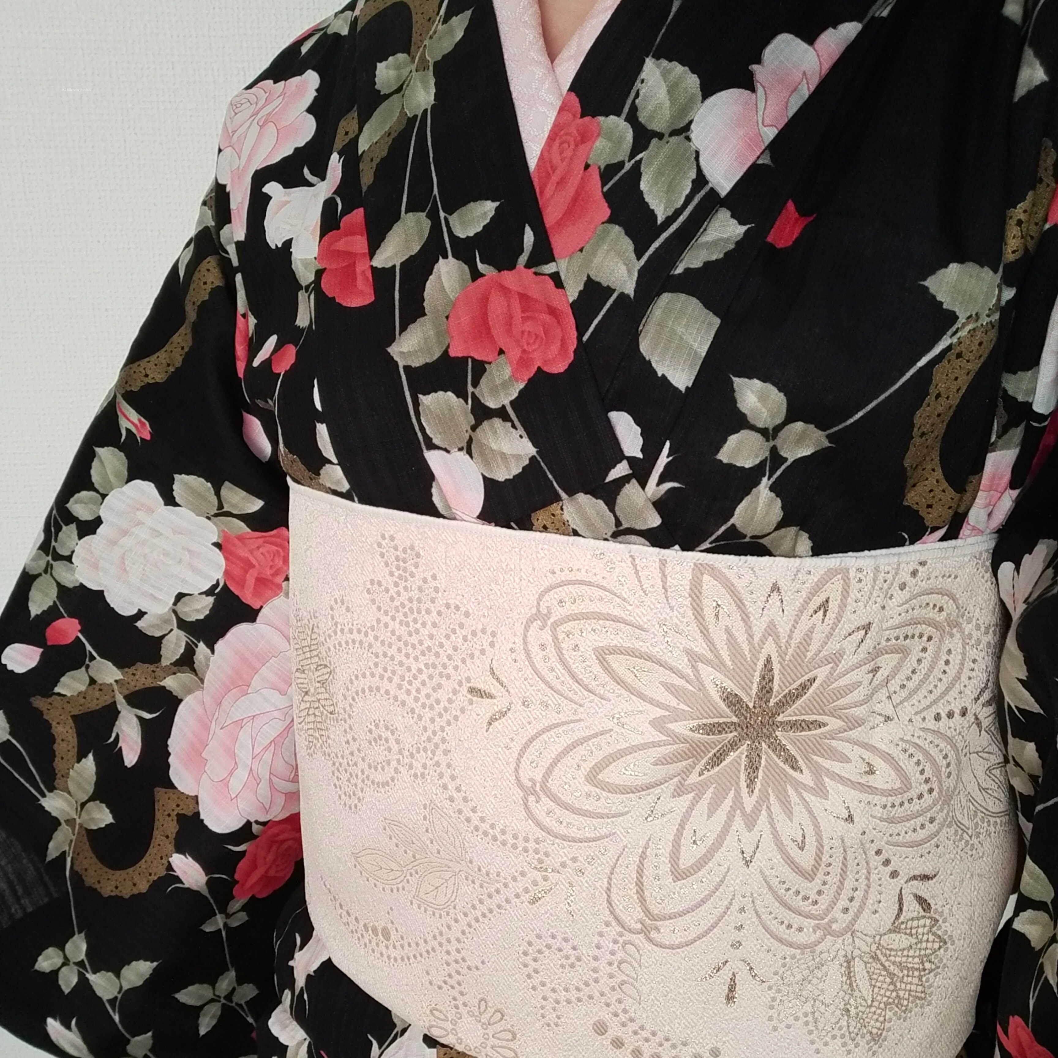 七宝繋ぎのアレンジな赤銘仙です。 山椒庵さん @sanshoan の帯を合わせて。