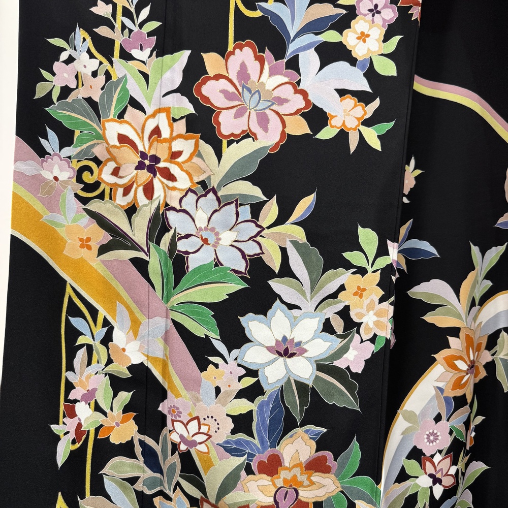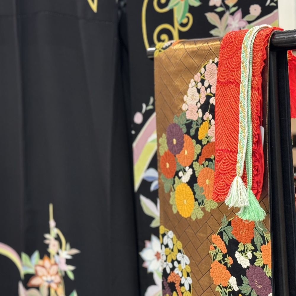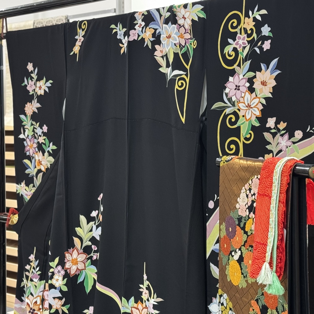 今年もきものサローネ2025でお着物のレンタルが可能です。 一般予約開始に先駆けてレンタル商品をご紹介! 華やかな振袖を赤と黒の2色で限定2点ご用意いたしました。 いつもとちょっと違う自分に出会える。大人の振袖で、特別な日をもっと楽しく、思い出に残る一日にしませんか? A-2レンタル着物振袖黒 身丈160cm/裄68cm 袋帯