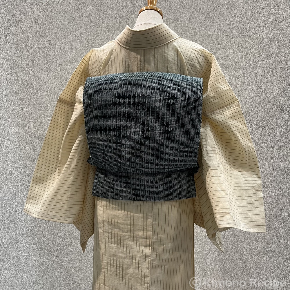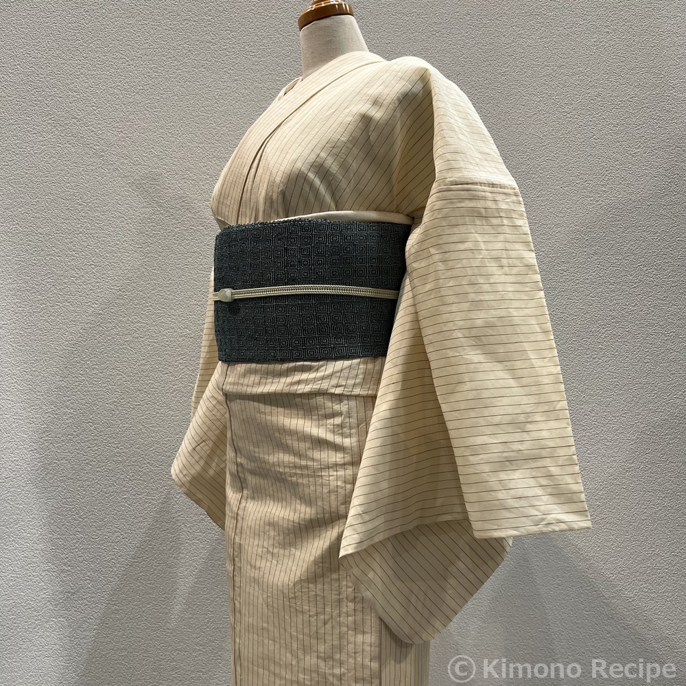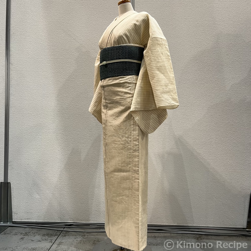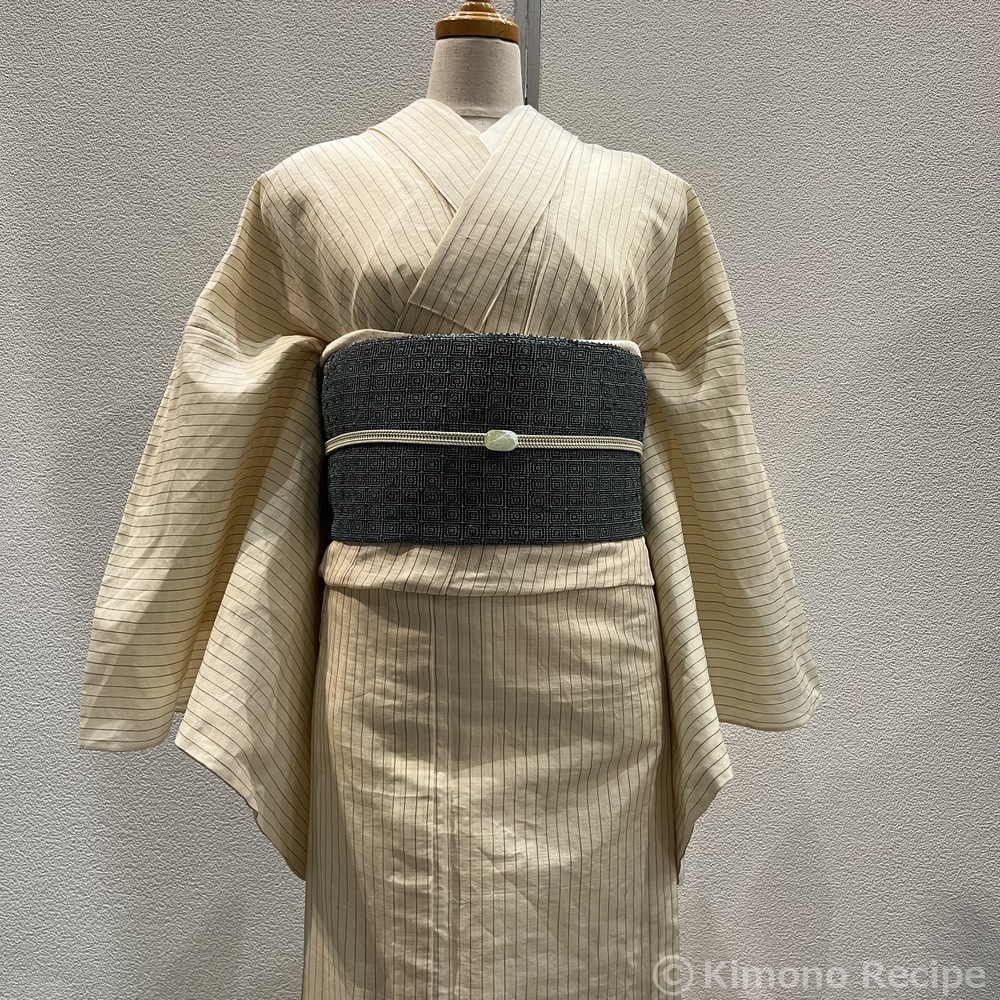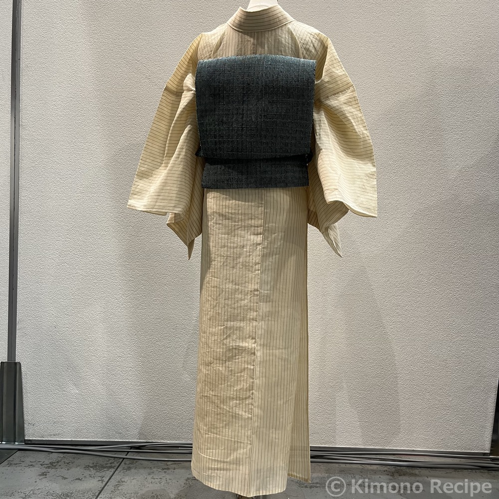涼やかな縞の着物は肌に付かない独特のシャリ感で、上品な透け感は着る人の美しさを際立たせます。