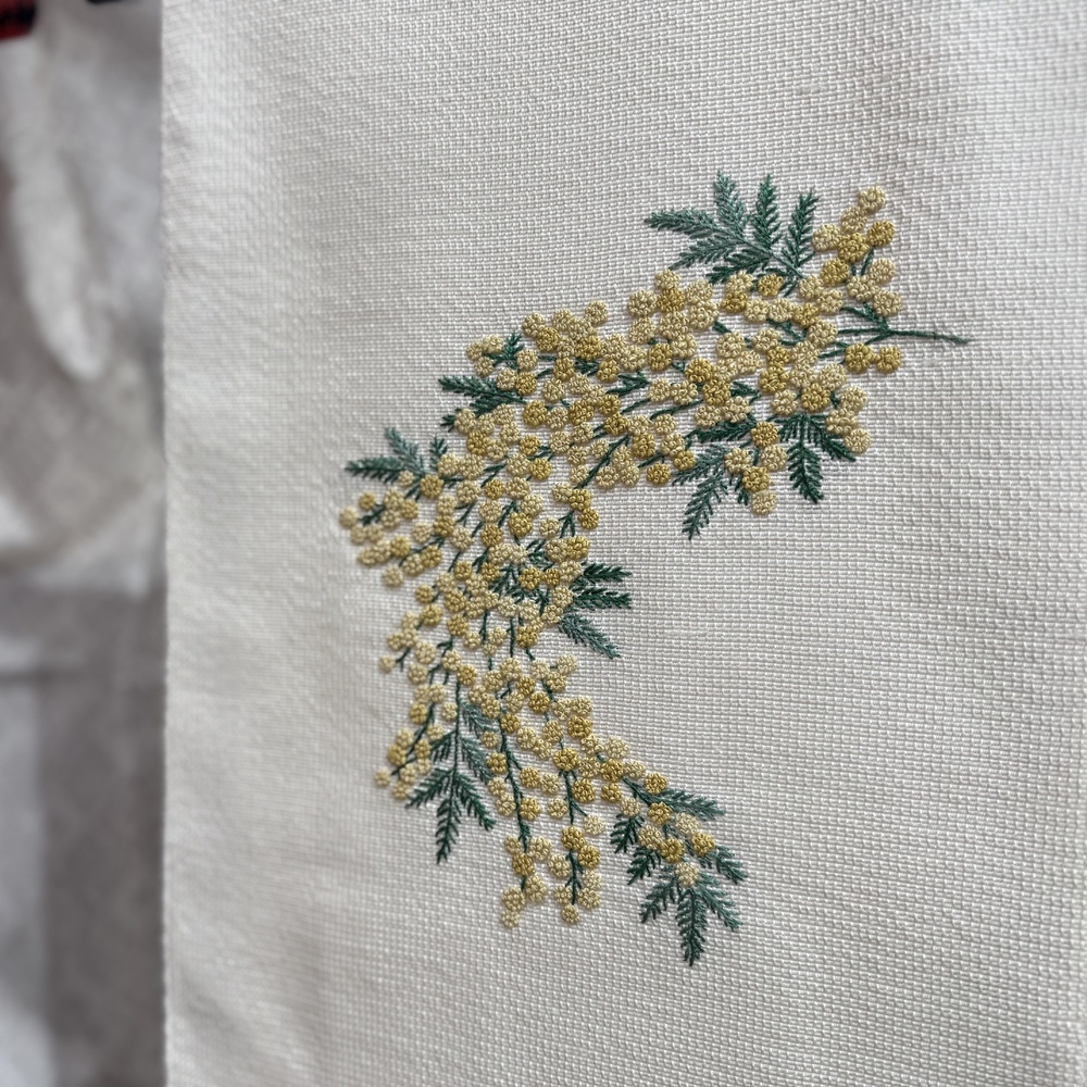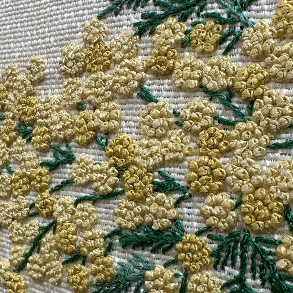 今年もきものサローネ2025でお着物のレンタルが可能です。 一般予約開始に先駆けてレンタル商品をご紹介! 着物好きが憧れる白色の本場大島紬に相良刺繍の立体的でふわふわとした質感がミモザの繊細な花弁を美しく再現した名古屋帯を合わせたコーディネートです。小物選びで個性を引き出す上級者コーデです。 B-3レンタル着物逸品 身丈160cm/裄68cm 相良刺繍名古屋帯