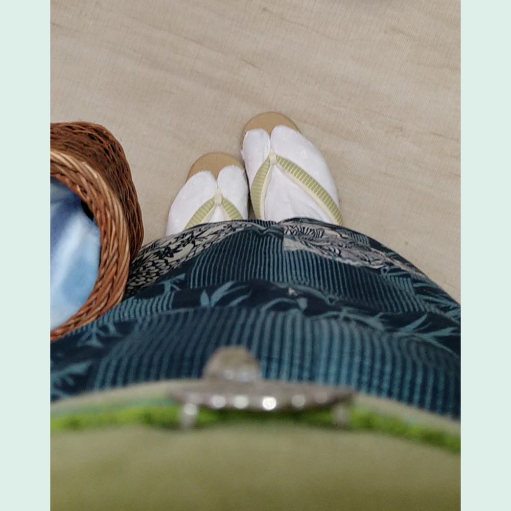 2025.7.12㈯ 33℃/26℃ 晴れ時々くもり #着物コーデ備忘録 和裁教室へ ※浴衣 綿絽 ※半幅帯 麻 ※帯留 T.O.D 雪華 ※草履 カレンブロッソ カフェ草履 ※バッグ かごバッグ ☆あしべ織り汗取り肌着+麻テコ(たかはしきもの工房)