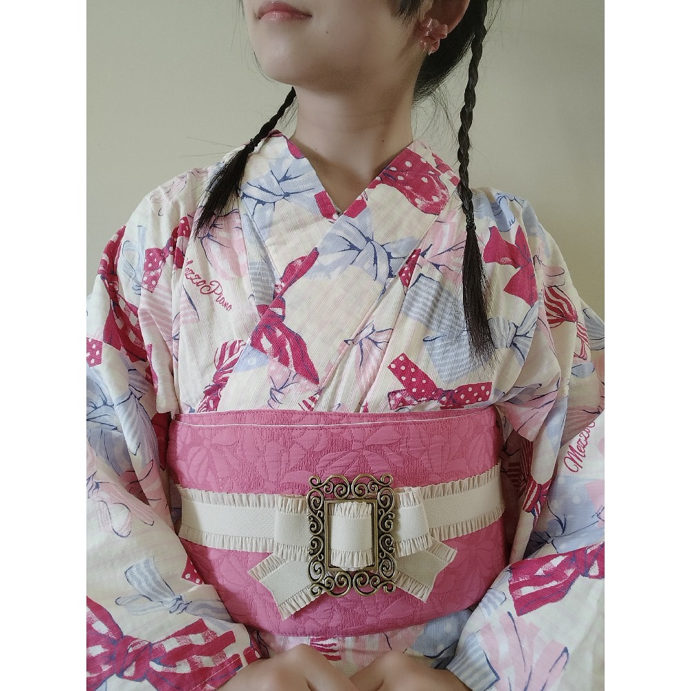 メゾピアノのキッズ150浴衣です。 先日のワフクブせんびるツアーでついお迎えしてしまいました。 裄は長いので最近の子は手足が長いのだなぁとしみじみしました。 イメージに合わせて髪を結んだのですが、仕事でカメラオン会議の予定があったので速攻でほどきました。TPOってありますよね。(浴衣であることと柄は許容範囲)