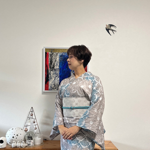 袷 色無地 正絹 半幅帯 黒木織物 博多織 KIMONOMODERN