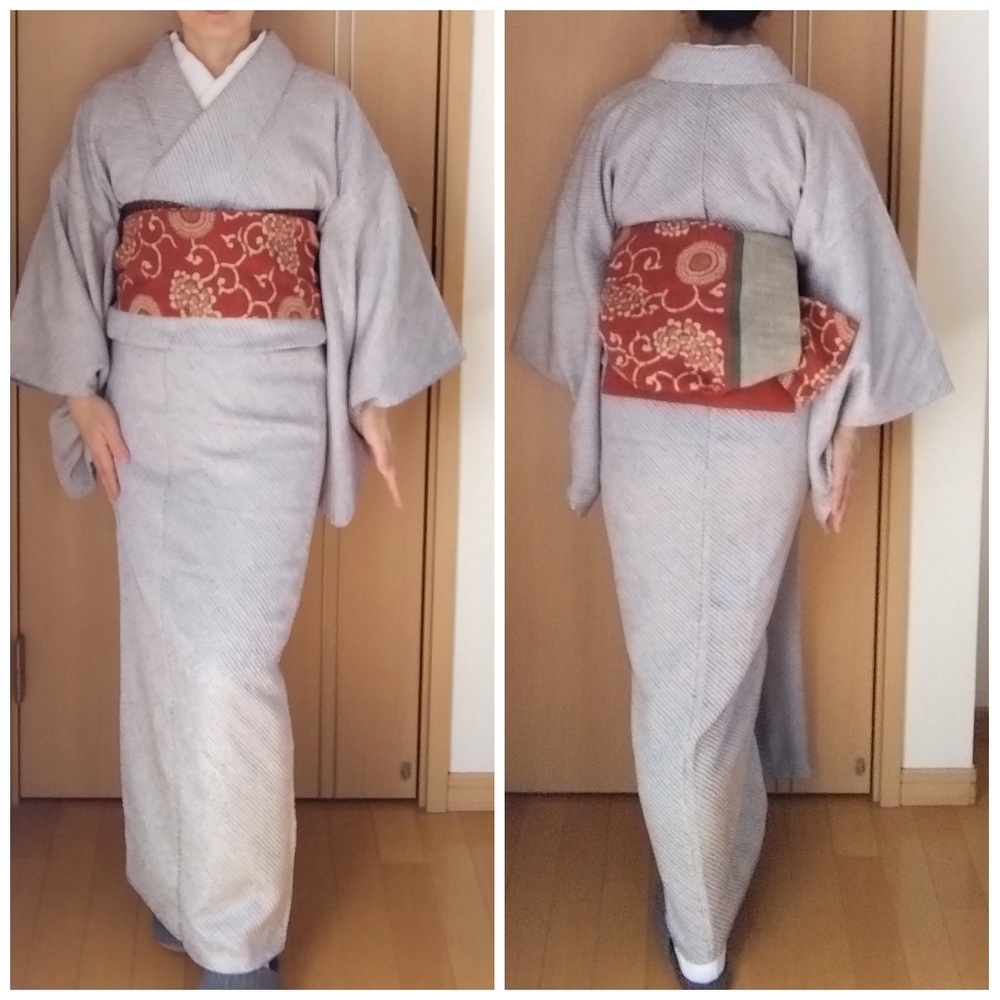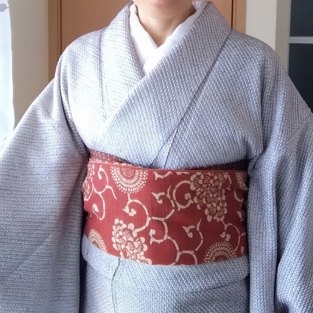 寒かったので総絞り 芯の薄い帯で角出し 夜、体調不良