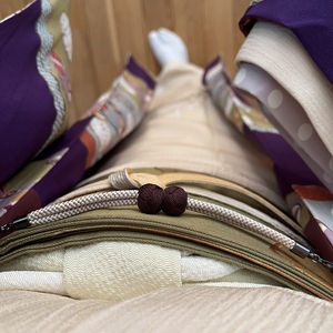 着物講座に行くのに、ずっと謎だった着物からコーデを組んだ。染め帯に竹が描かれていたので、松葉の帯揚げ、梅っぽいお花の半衿に常緑の意味で緑の帯締めと松竹梅を表した。 着物は無事に「本塩沢」と判明。すっきり。