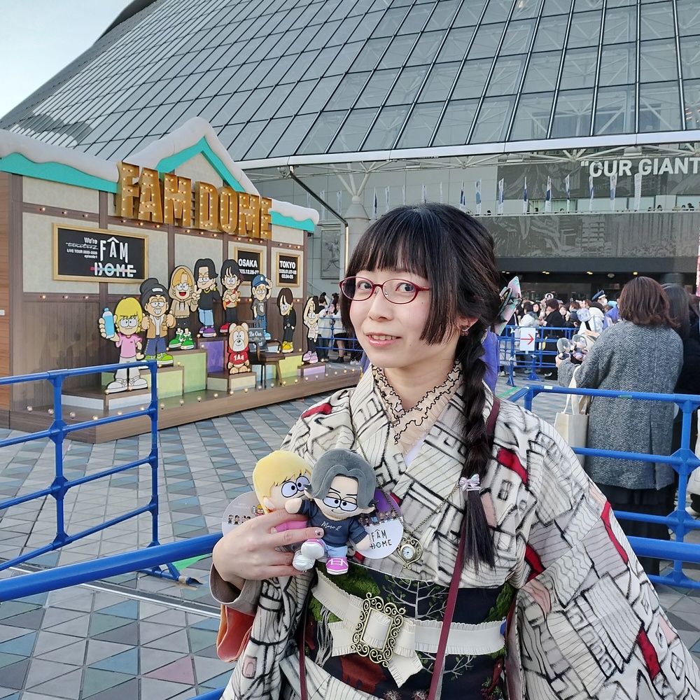 ツアーのテーマがFAM(家族)、HOMEということでフォトスポットのオブジェがおうちなんですね。なのでおうち柄の銘仙を。