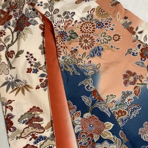 初任給ディナーは水色芝草小紋と水色華唐草帯