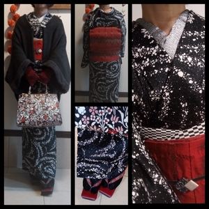 この更紗ぽい型押し花柄に一目惚れした、洋装にも和装にもあうやつ。 (本店)