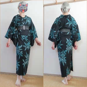 ヤツデ?浴衣をゴムベルトで洋ミックス