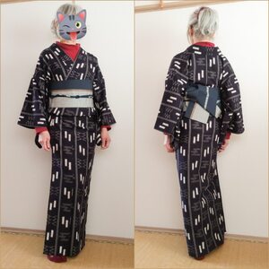 昭和レトロポップなウール着物にウール名古屋で角出し
