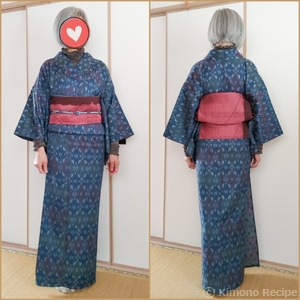 5月ラストは銘仙風味のウール絣で同系色コーデ