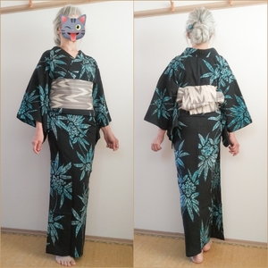 桔梗とススキの注染浴衣を対丈で