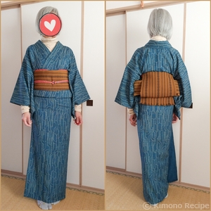 草むらのウール着物で短め着付け