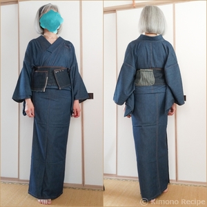 デニム浴衣に献上半幅のコーデ 着直し