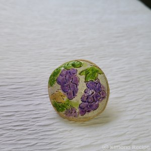 最初の1、2個目はクリアな作品だったが、帯に映えない。ようやく3個目で、かわいく納得いく作品ができた。娘よありがとう。